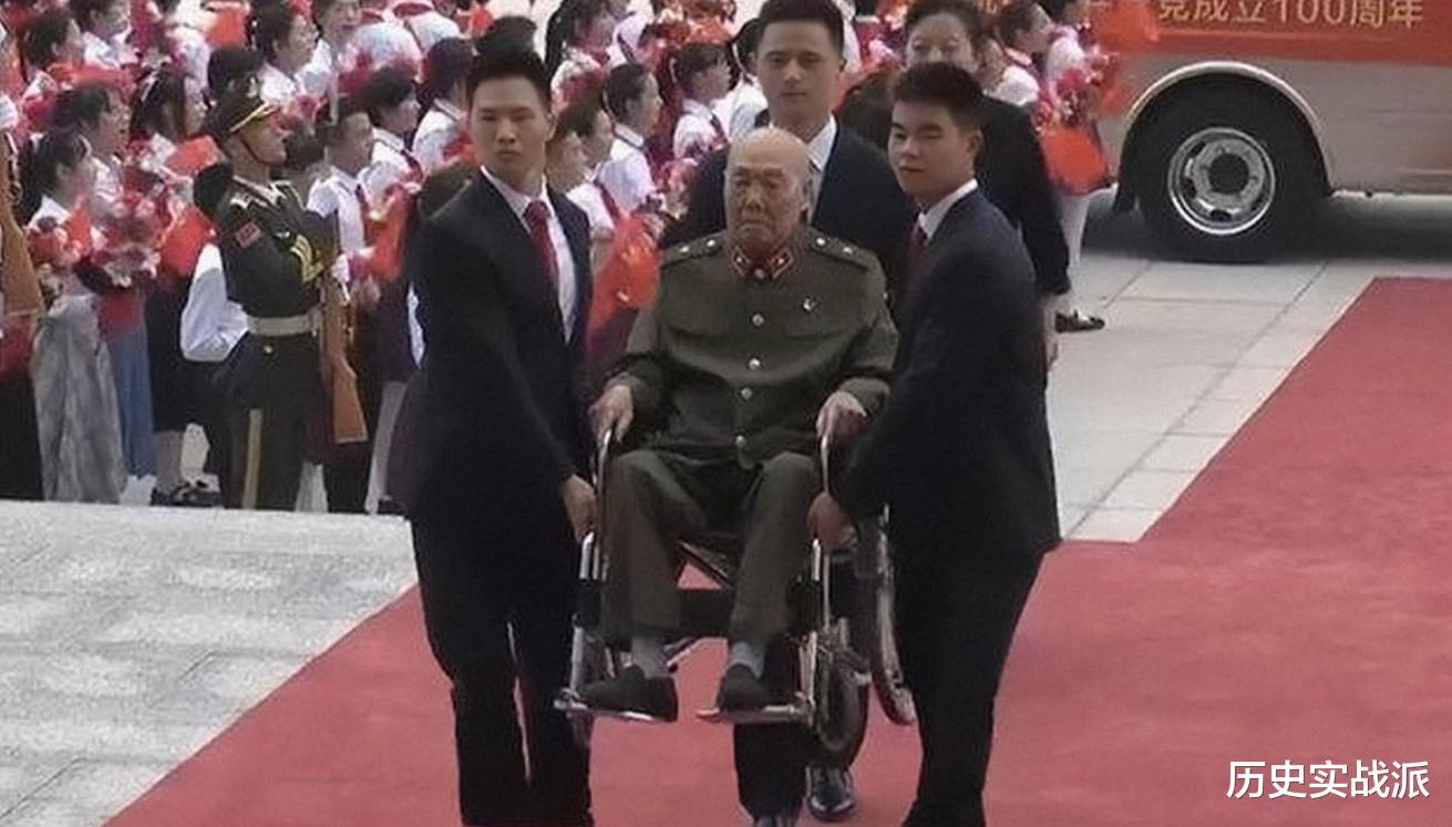所以在2010年,庆祝中国共产党成立100周年的“七一勋章”颁授仪式上,他被人抬进了人民大会堂。颁奖词称他为“战功赫赫,百战老兵,倾心传播红色革命基因。”