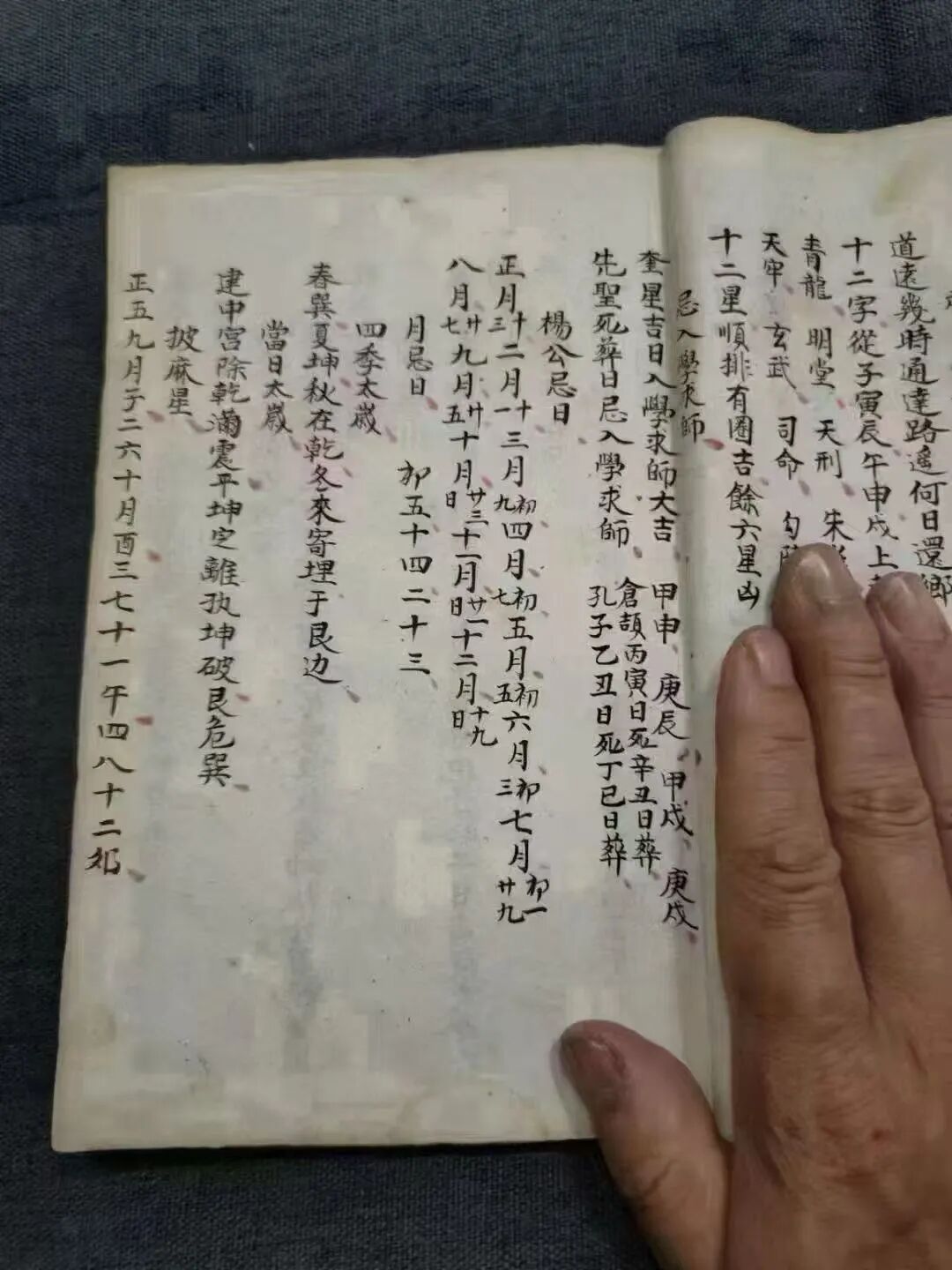 择吉藏家狂喜!清代名师张重三亲抄阴阳择吉秘典《应酬事本》重磅现世,114页面一册全、完整无缺、品相完好,依托清代正统阴阳择吉脉源,专注日常应酬、婚嫁、上任等各类场景择吉核心,收录天干地支图、嫁娶周堂图等全品类择吉技法与帖式,流传稀少、极为罕见,是择吉从业者、古籍爱好者、民俗文化研究者、藏家珍藏传世、深耕实操的不二之选,错过再无!张重三作为清代知名择吉名师,其手抄本素来以“字迹工整、内容详实、实操性强”著称,而《应酬事本》作为其亲抄力作,更完整保留了清代阴阳择吉的原始风貌,兼具实操性、文献价值与古籍收藏价值。