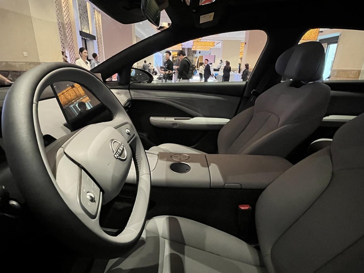 内饰方面,日产N7与当下新能源汽车设计风格趋同,简约的内饰搭配环抱式座舱,双幅式方向盘带有操作滚轮,前方还有悬浮式液晶仪表和电子怀挡。平直的中控台上方提供可升降音响,车内几乎没有实体按键,功能集成于悬浮中控屏当中,搭载高通骁龙8295P座舱芯片,融入DeepSeek大模型。此外,还提供手机无线充电和冷暖冰箱。