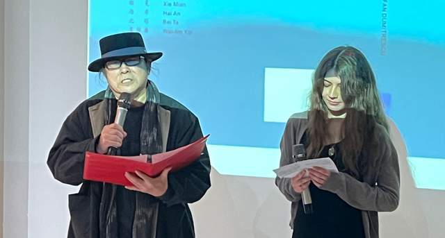 罗马尼亚萨图•马雷国际诗歌节主席、《诗歌》杂志主编、诗人乔治·武尔图雷斯库(George Vulturescu)亲自登台,朗诵了《无题》《北方的拱点就是黄昏》两首诗作原文,翻译家高兴的中文译本由朗诵家美琴演绎;斯特凡·杜米特雷斯库(Stephane Dumitrescu)的《空中钉钉子者颂》经罗马尼亚中文教师山花(Mioara Dumitrescu)女士翻译成中文,由北塔润色,中文译本由姬国盛朗诵,罗马尼亚语朗诵由倪梦宇完成。