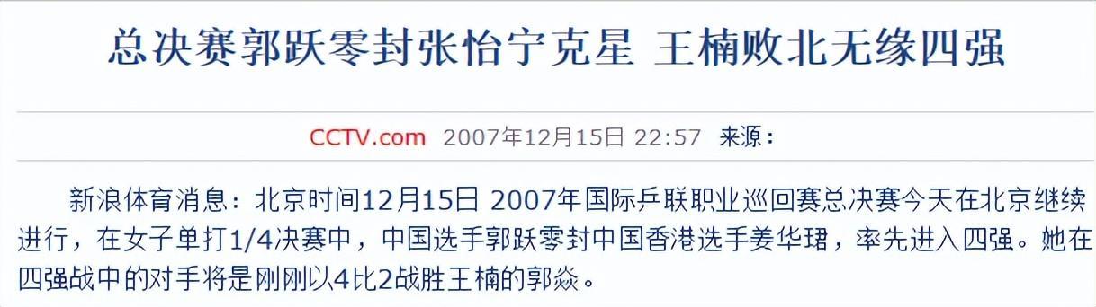意气用事2007年,郭跃19岁的那一年,发生了一件令整个乒乓球界为之震惊的大事。当年的世乒赛女单决赛,19岁的郭跃与国家队队长、"大魔王"张怡宁相遇,两人之间的实力差距被认为是一场"毫无悬念"的胜负。毕竟,时年27岁的张怡宁已是三朝元老、位列世界第一,而郭跃则只是一个刚觉醒的"小太阳"。
