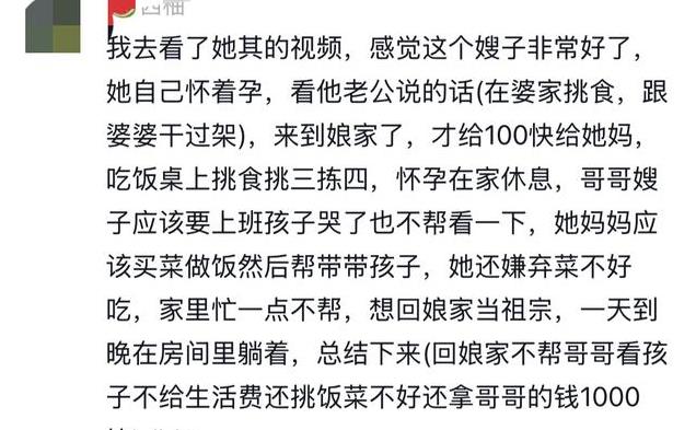 也有网友说,这个嫂子已经很好了,前期因为小姑子在自己婆婆家吵架,才来到娘家的,并且什么不干,还挑三拣四的。