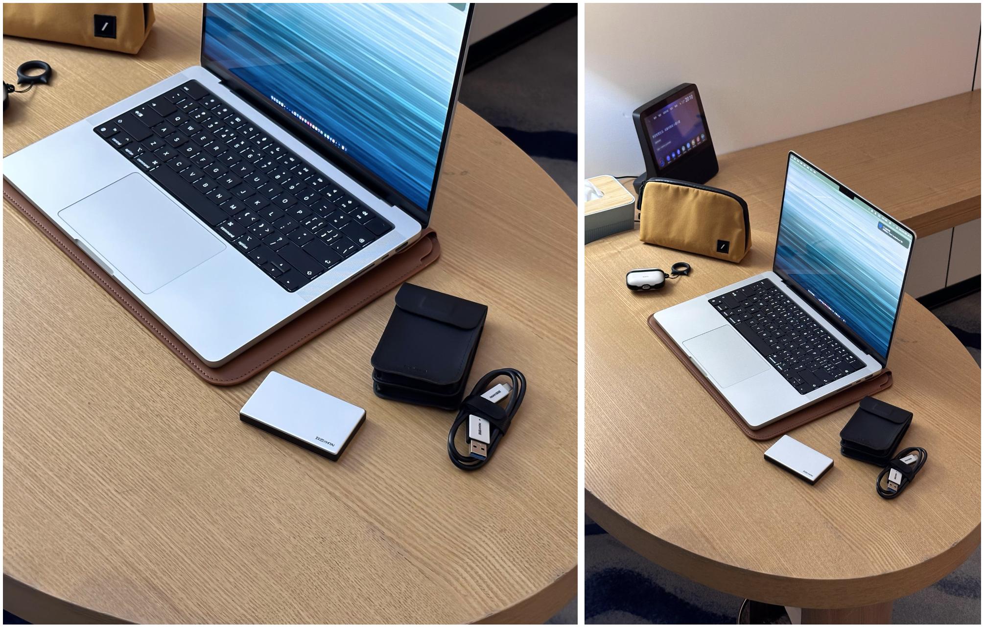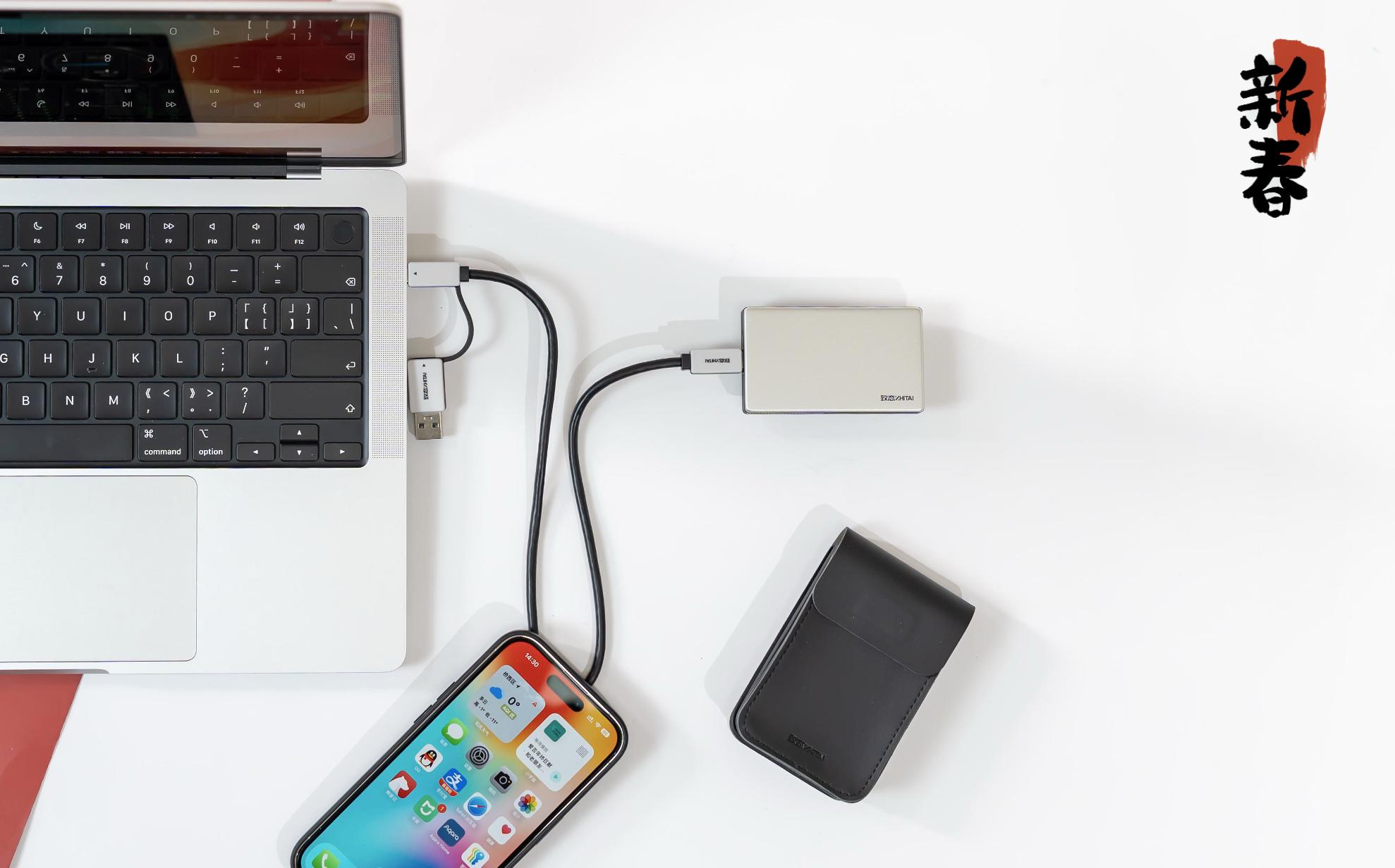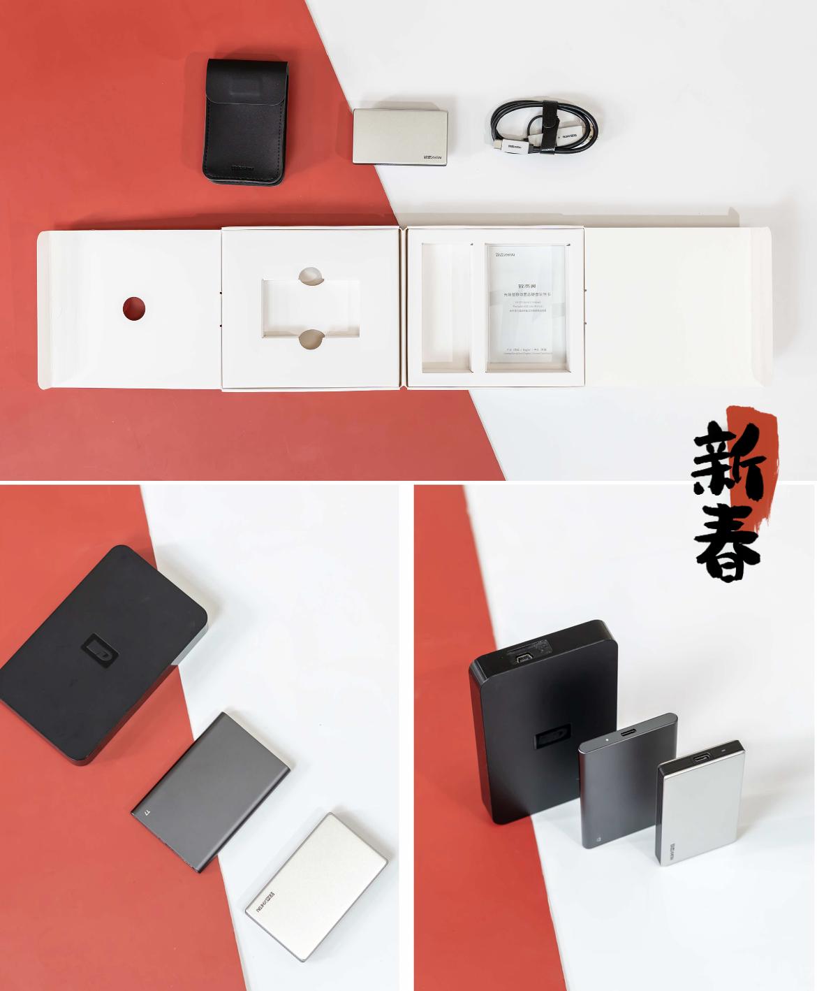 除了硬盘本体之外,随箱还附赠了USB-C转C和USB-C转A二合一数据线以及带有隔层的小巧收纳包,方便外出携带,数据线再也不会一团糟。