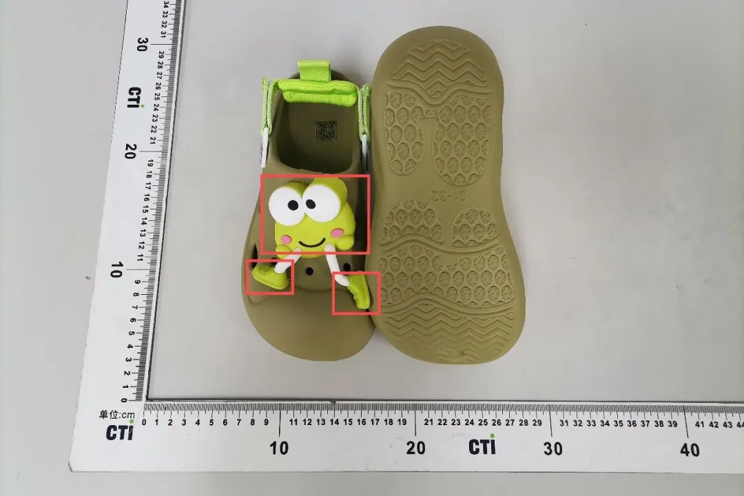 📌朴西品牌样品的鞋花部位,检出重金属铅含量超过国家标准GB 30585-2024《童鞋安全技术规范》相关要求。