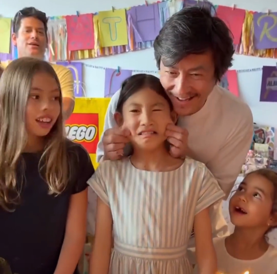 尽管状态稍显憔悴,陈冠希的父爱却丝毫未减。女儿对着蛋糕发表生日感言时,他全程一脸宠溺注视,还从背后轻轻捏着女儿的脸颊,温柔又深情,满屏都是父女情深。