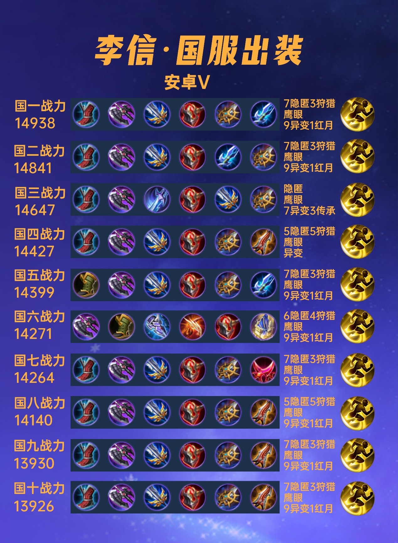 这篇文章我们来看一下40位国服李信的出装铭文汇总。