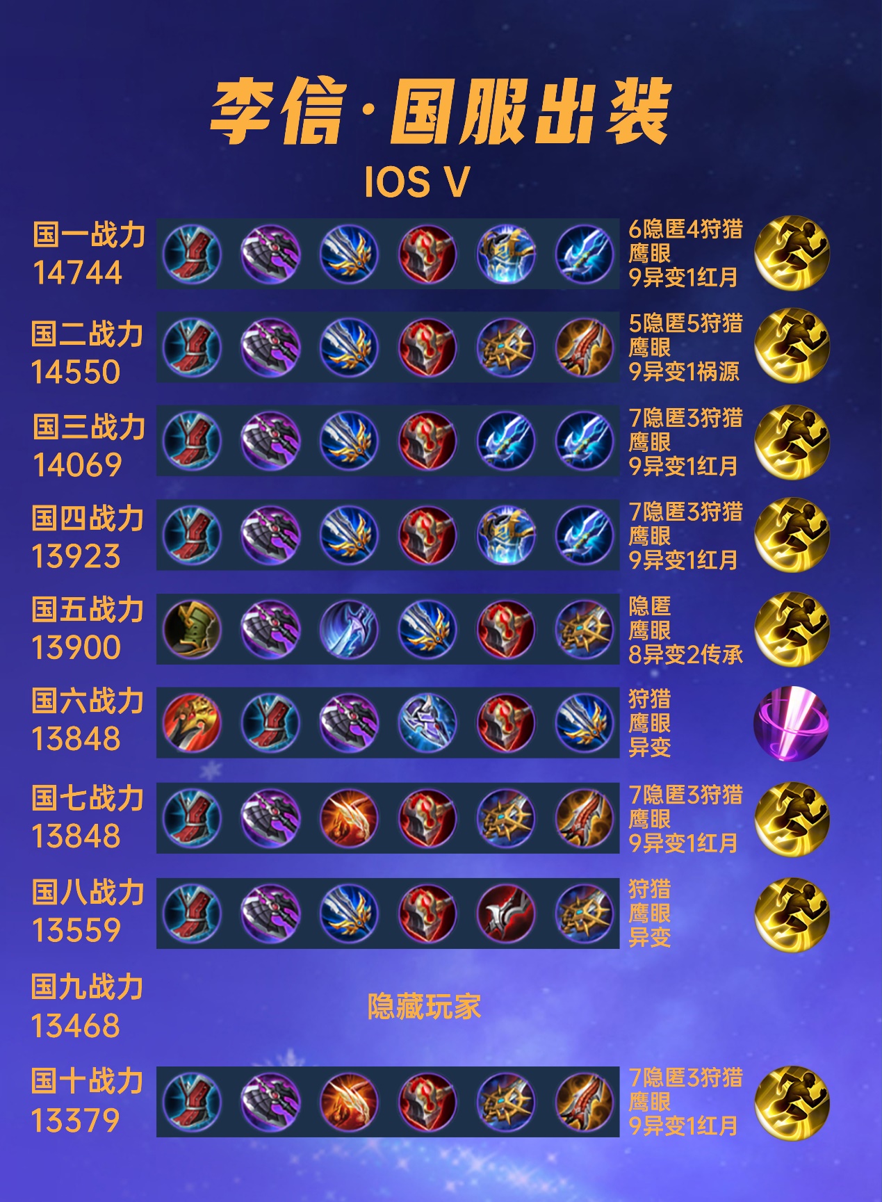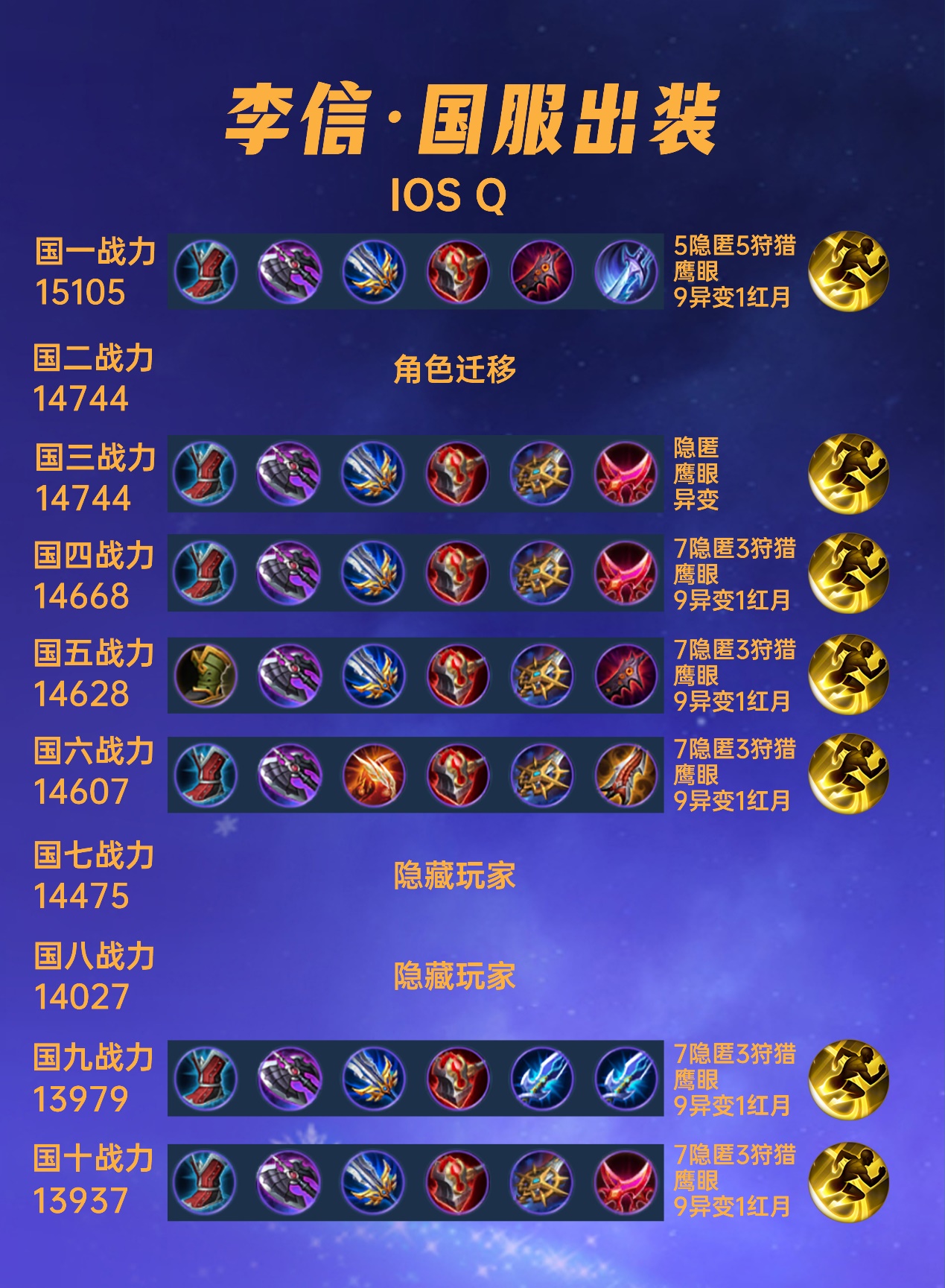 值得一提的是40位国服李信中,排除几个隐藏玩家和角色转移的,没有一个暗信,全都是光信,估计那几个隐藏的也是光信,一个双形态英雄差距这么大,也是很有意思的。