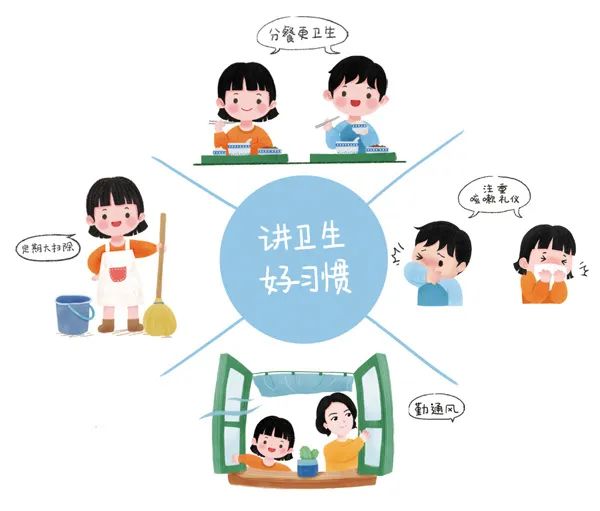 在饭前便后勤洗手,保证生活环境的干净整洁,可以预防病从口入和粪口传播。
