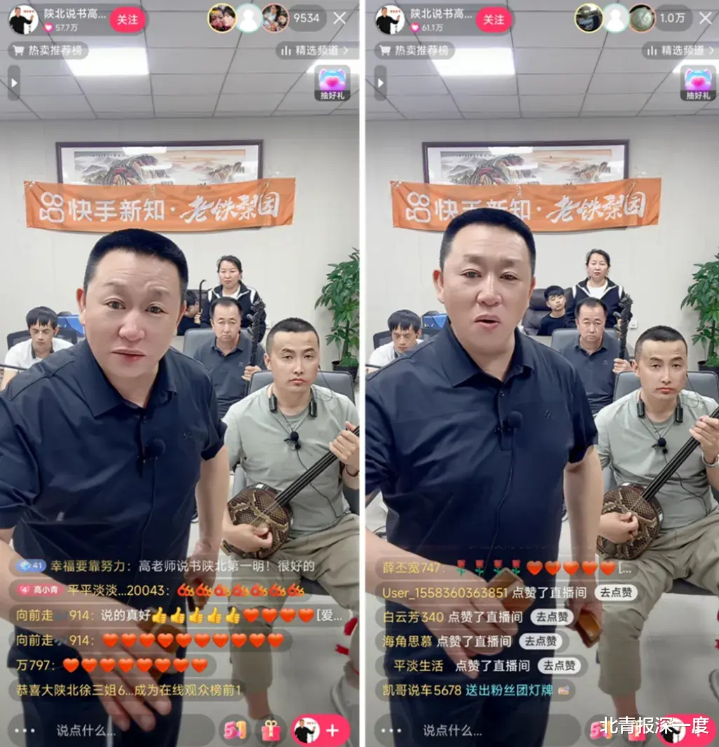 在快手,高小青也看到更多的陕北说书同行。而以前,很多同行做不下去时不得不改行,去打工、做生意。