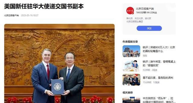 美国新任驻华大使递交国书副本.北京日报客户端.2025-05-16