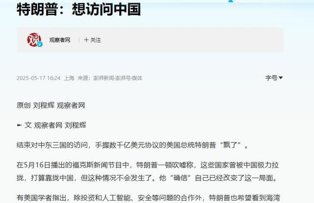 特朗普:想访问中国.澎湃新闻.2025-05-17 16:24