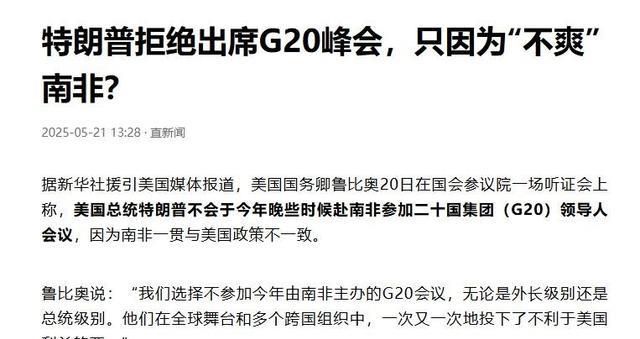 美国务卿:特朗普不参加G20.光明网.2025-05-21