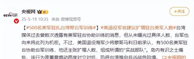近日,美国退役海军少将在美国国会听证会上首次公开确认,称“目前约有500名美军部署于中国台湾地区”。