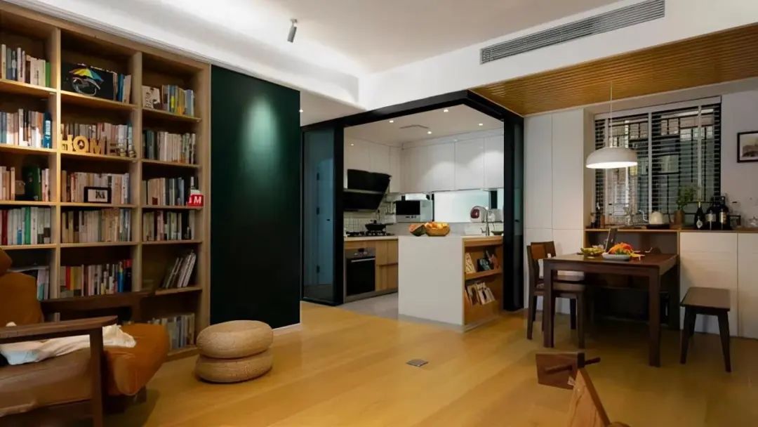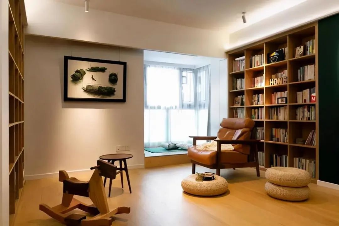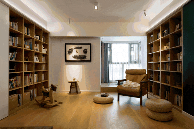 客厅则特色了两个书墙的设计,为家居增添了浓厚的文化氛围。