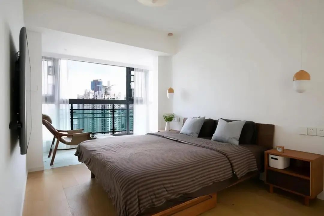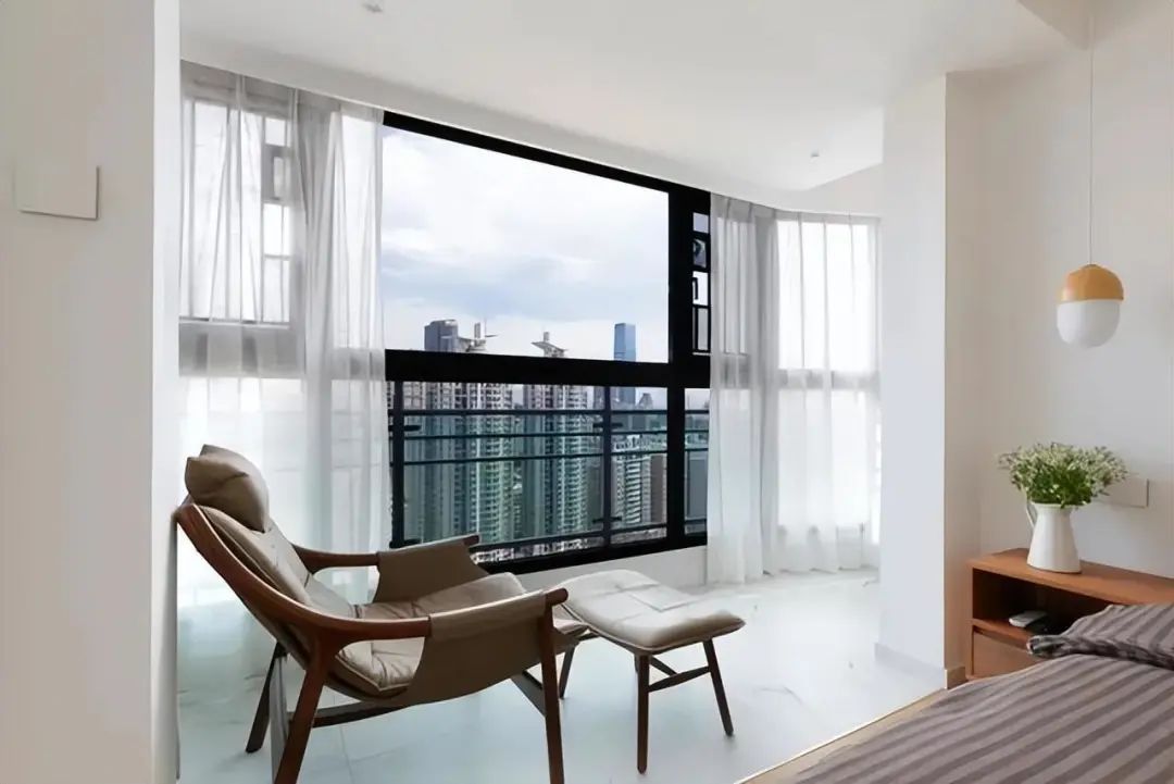 主卧的最大亮点无疑是拥有的观景阳台。设计师巧妙地将阳台纳入卧室空间,精心摆放了一组休闲椅,将其打造成一个舒适的放松空间。这里的设计注重人的生活体验,不仅可以享受室内温馨,更能感受户外的自然风光。清晨的阳光、星空的璀璨,都成为了生活中最美的点缀。这样的设计,无疑大大提升了生活的心情与品质,为主卧注入了更多的活力与诗意。