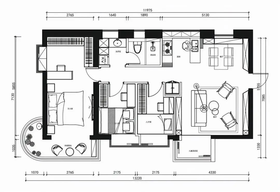 全屋面积约为75平米,呈现方形格局,设计为三居室。然而,每个房间的空间相对较小,是家中的一个不足之处。此外,家中还设有一个卫生间。在考虑装修和布局时,需要充分利用每一寸空间,确保功能的完善和居住的舒适。根据女主人的要求和户型现状,设计师做了以下装修设计: