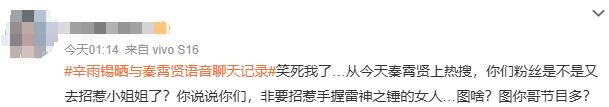 其次在辛雨锡爆料之后,更是有无数的私信开始对她进行攻击,评论区为秦霄贤站队的人更是不在少数,他们言语间对女方进行侮辱挑衅和谩骂,嫌少有一些认同辛雨锡的,也只是玩笑般的说上一句:你们粉丝非惹手握雷神之锤的她干啥。