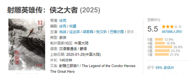 在电影首映之前,肖战粉丝的积极支持使得《射雕英雄传之侠之大者》的预售表现极为出色,甚至攀升至春节档预售票房的前三名。影迷们透过“锁定放映厅”及“全面包场”的手段,彰显了其显著的支持力度,但这种营销手法过于倚重流量演员的模式,在电影公映之际,显现出了种种弊端。