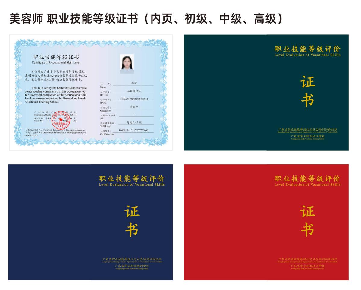 广东省华大职业培训学校,广东省省级美容师等级证书指定报考单位(人社部备案号S000044007011),广东省级重点民办培训机构,2021年第一批职业技能等级认定社会培训评价组织。学校作为省级社会培训评价机构,可在全省各市开展美容师(三、四、五级)职业技能等级认定工作,常年开考,其评价结果纳入当地人才统计,享受属地人才激励政策。欢迎各培训学院、企业、机构合作报考,简单易考,证书办理周期快。