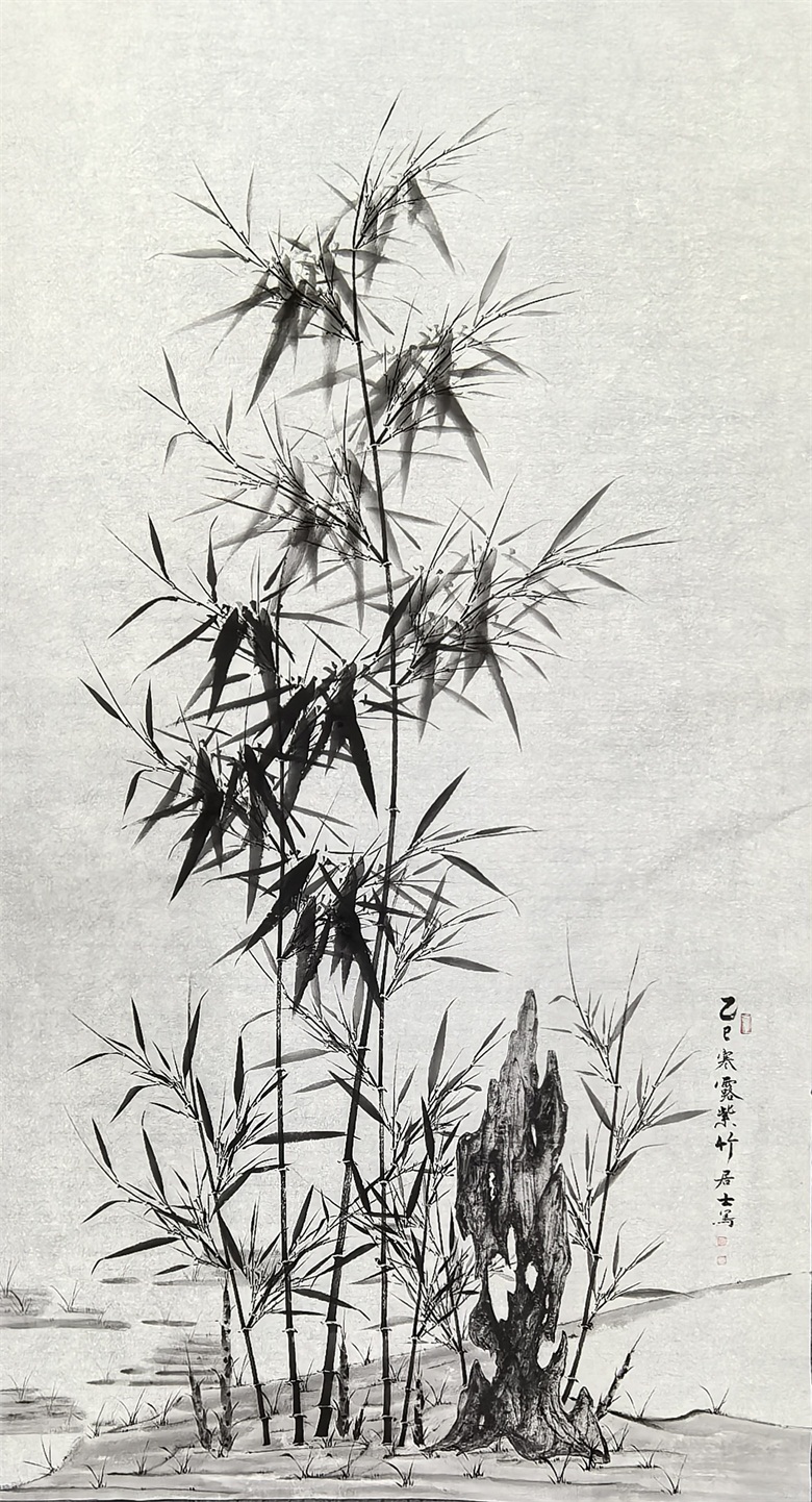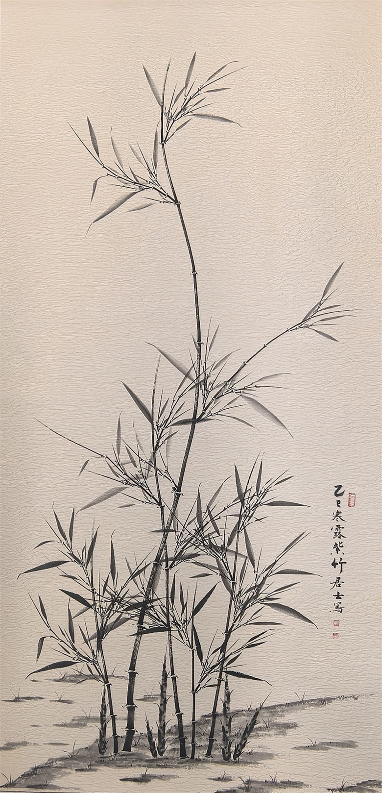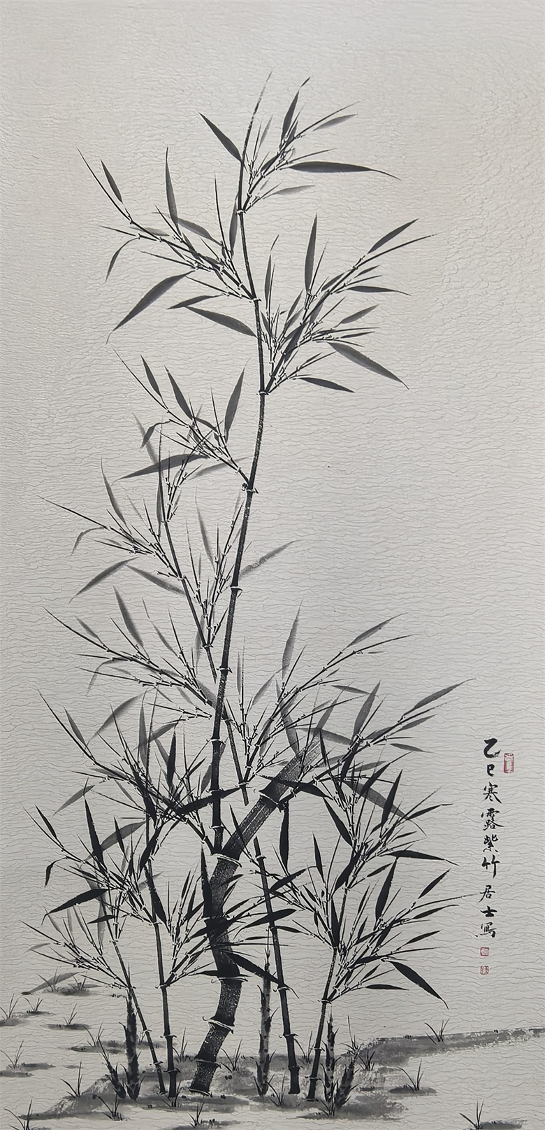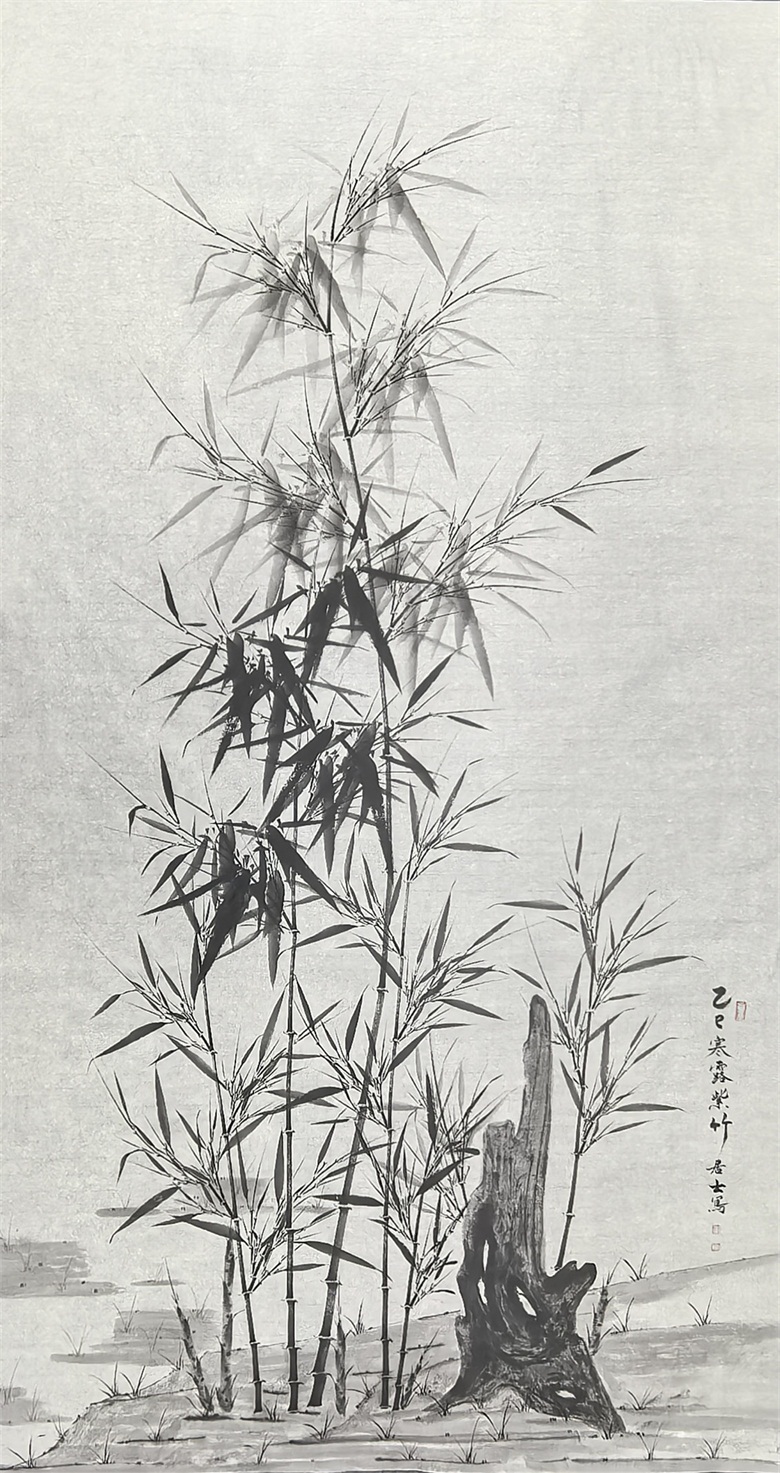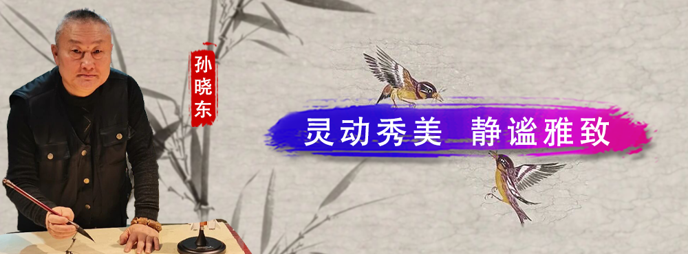 孙晓东喜竹、爱竹、画竹,更喜欢竹子那种坚韧不屈、挺拔清幽、无私奉献的气节与品格。孙晓东把所有精力都倾注到画竹一件事上,每天一心一意在这条路上勤奋耕耘。二十年来,他博览古今名家之作,汲取众家之长,认真钻研历代名家的绘画作品,在写意与写实之间,逐渐摸索出自己的风格,其独创的紫竹、金镶玉竹、墨竹,突破了传统,高古禅意、灵动秀美、静谧雅致,在竹枝竹竿方面完美表现出竹子的坚韧,圆润和弹性,竹子的灵魂用笔墨完美表达出来,在中国绘画界独树一帜。