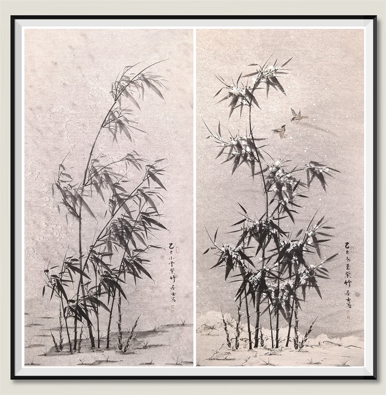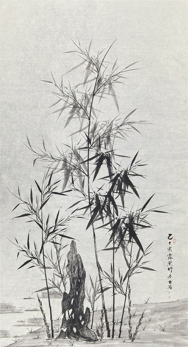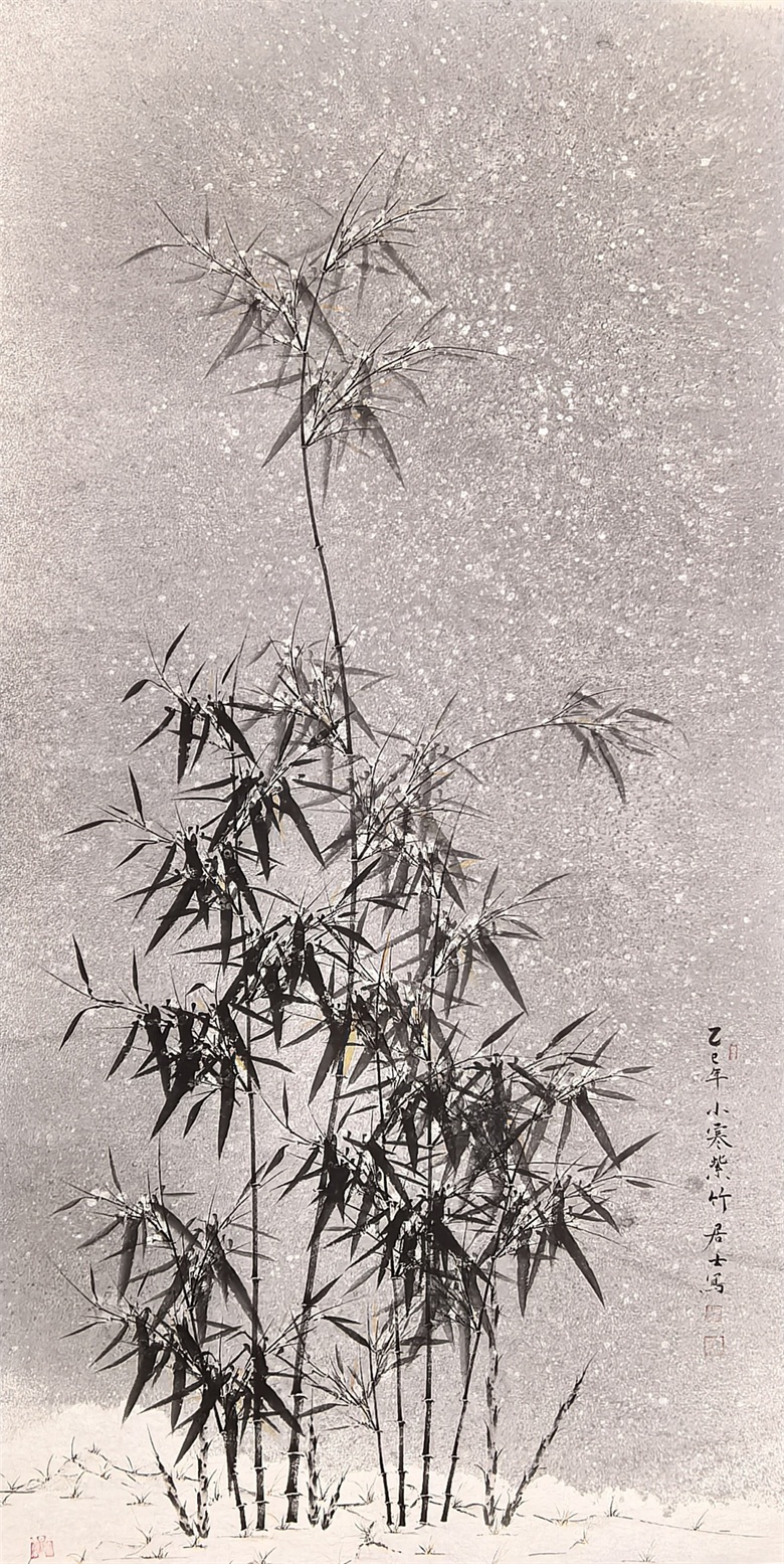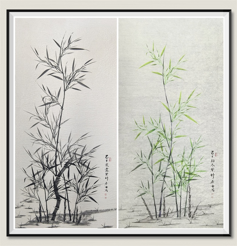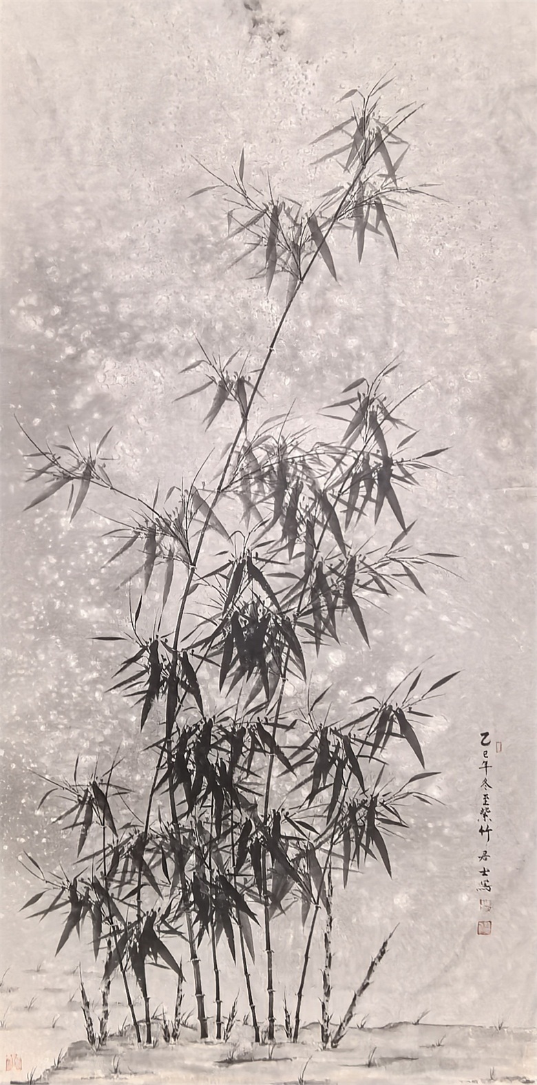 孙晓东喜竹、爱竹、画竹,更喜欢竹子那种坚韧不屈、挺拔清幽、无私奉献的气节与品格。孙晓东把所有精力都倾注到画竹一件事上,每天一心一意在这条路上勤奋耕耘。二十年来,他博览古今名家之作,汲取众家之长,认真钻研历代名家的绘画作品,在写意与写实之间,逐渐摸索出自己的风格,其独创的紫竹、金镶玉竹、墨竹,突破了传统,高古禅意、灵动秀美、静谧雅致,在竹枝竹竿方面完美表现出竹子的坚韧,圆润和弹性,竹子的灵魂用笔墨完美表达出来,在中国绘画界独树一帜。