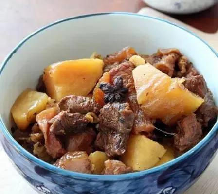 7.土豆切块,牛肉炖1个小时后,放入土豆;