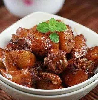 4、加酒,生抽,老抽上色,加一点豆瓣酱,糖,翻炒均匀,加水,焖10分钟后,放土豆,焖只20分钟后,调味,收干汤汁,即可出锅。