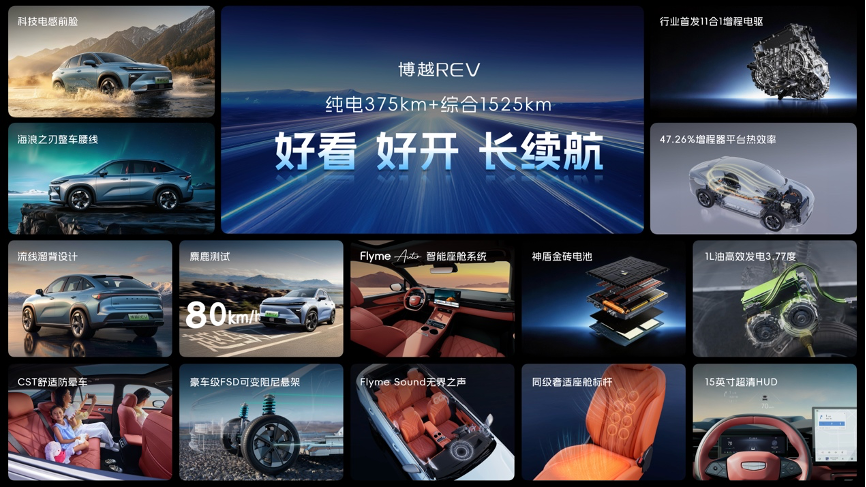 在车型诞生十周年之际,博越又以一种全新的形态出现在我们眼前,博越REV正式上市,售价区间为10.79万元-12.09万元,这也是博越首次以新能源的动力形式出现,新车全系都搭载增程式动力系统,并且给到了10万级紧凑型SUV中罕有的大容量电池,让车辆的综合续航最高能达到1525km,日常绝大多数情况下都可以当作一台纯电车型来使用。