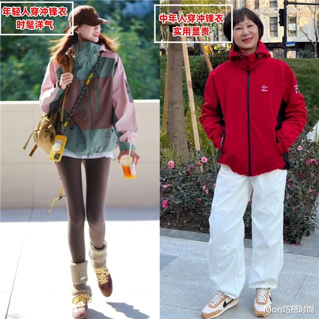 冲锋衣则完全不同,它的剪裁和设计往往更加简洁大方,没有过多的装饰和繁复的细节,这种“极简主义”的高级感,正符合当下中产们所追求的老钱风搭配精髓。