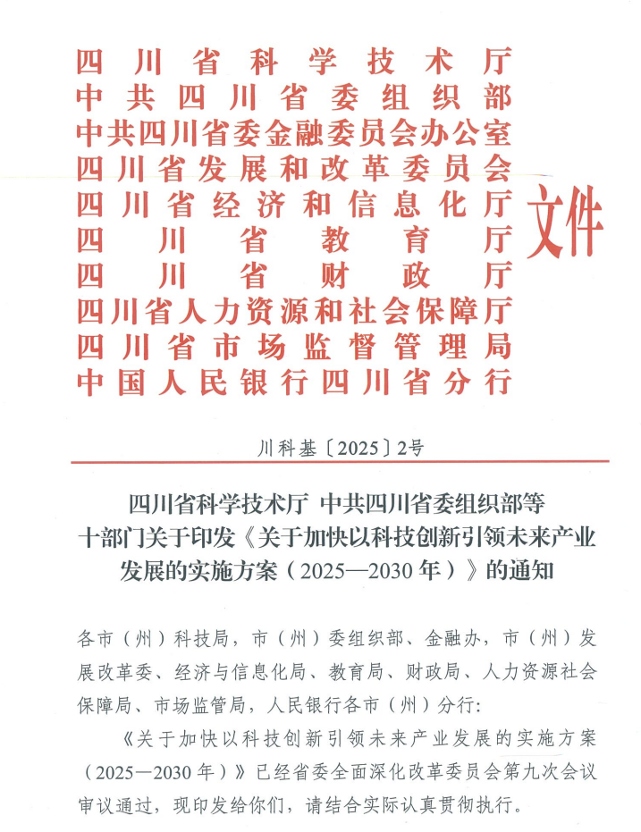 近日,四川印发《关于加快以科技创新引领未来产业发展的实施方案(2025—2030年)》。