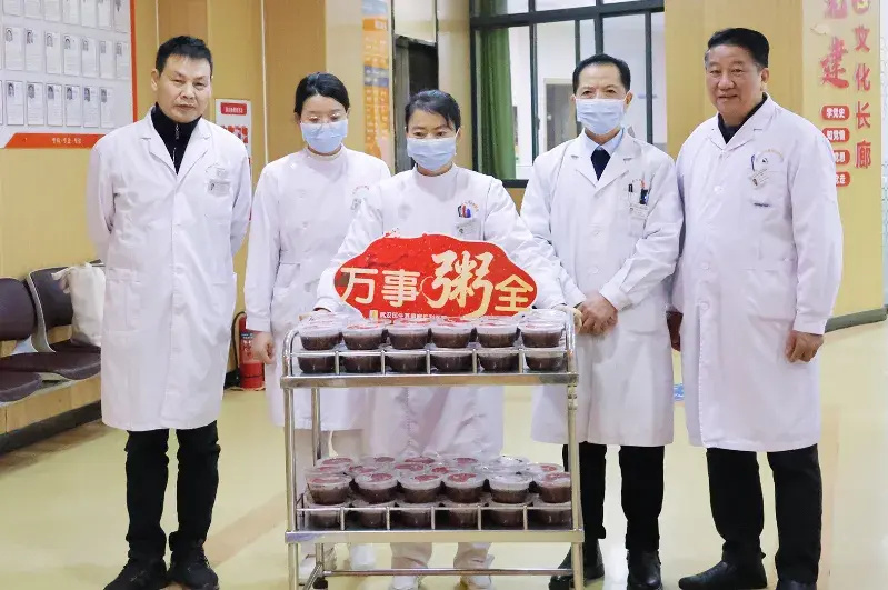 腊八的清晨,浓郁的粥香混着水汽弥漫开来,为清冷的冬日增添了几分烟火气。在院长禹爽的统筹安排下,医院医疗院长姚行齐、业务院长杨成江带领医护团队,推着满载腊八粥的餐车,从住院部到门诊候诊区,从中西医结合治疗区到医生诊室,将一碗碗热气腾腾的腊八粥送到每一位患者和家属手中,让这份温暖覆盖院区的每一个角落。