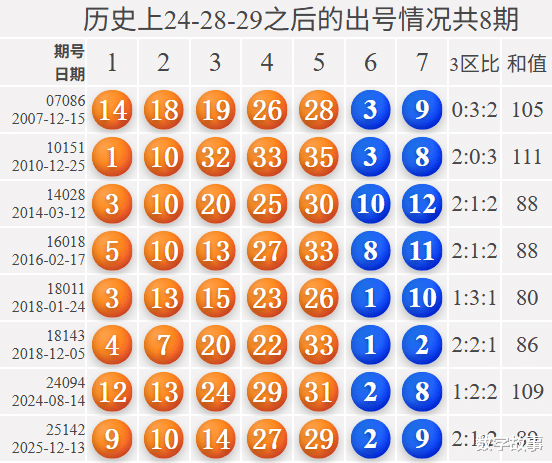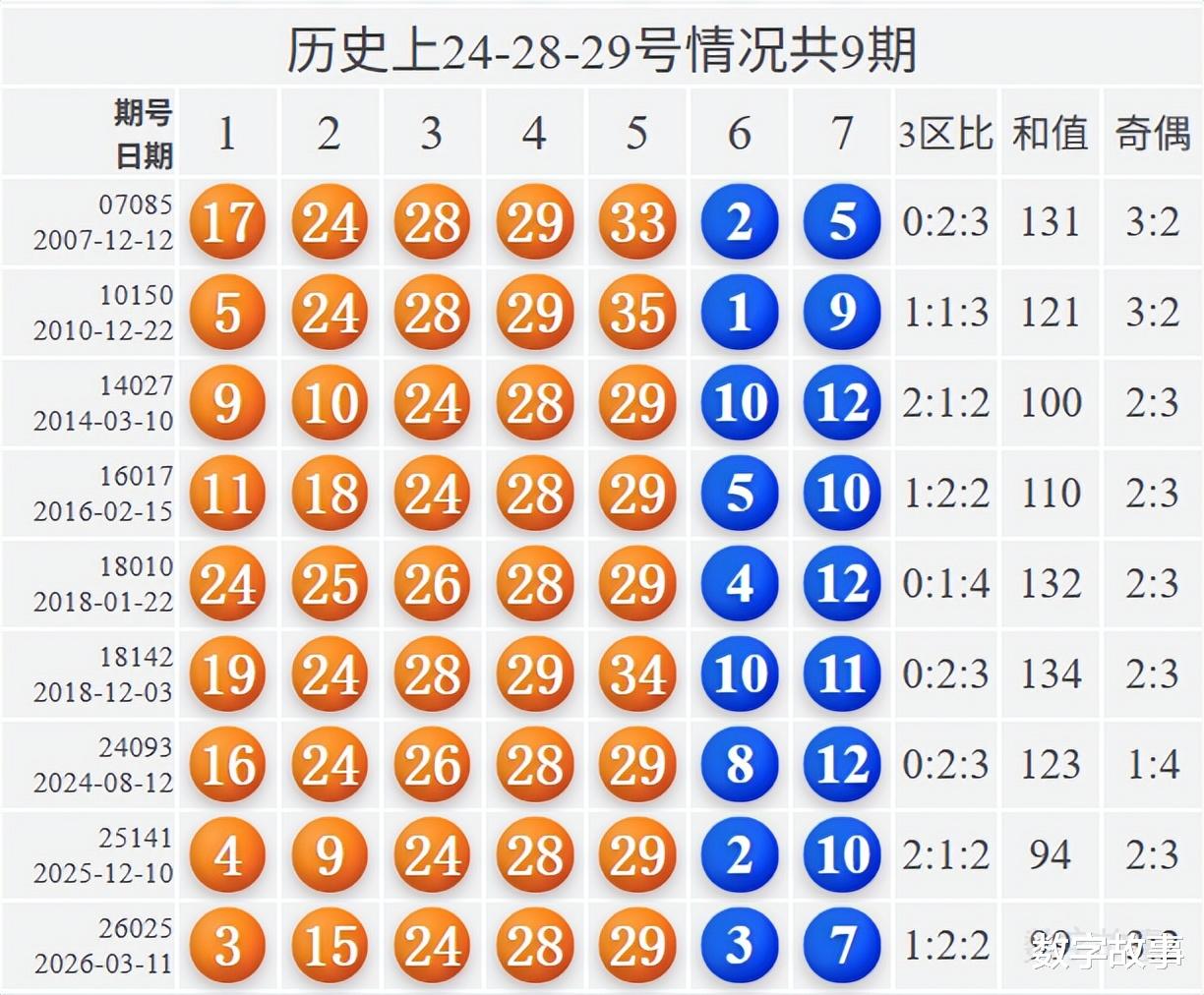大乐透前区号含24-28-29历史统计