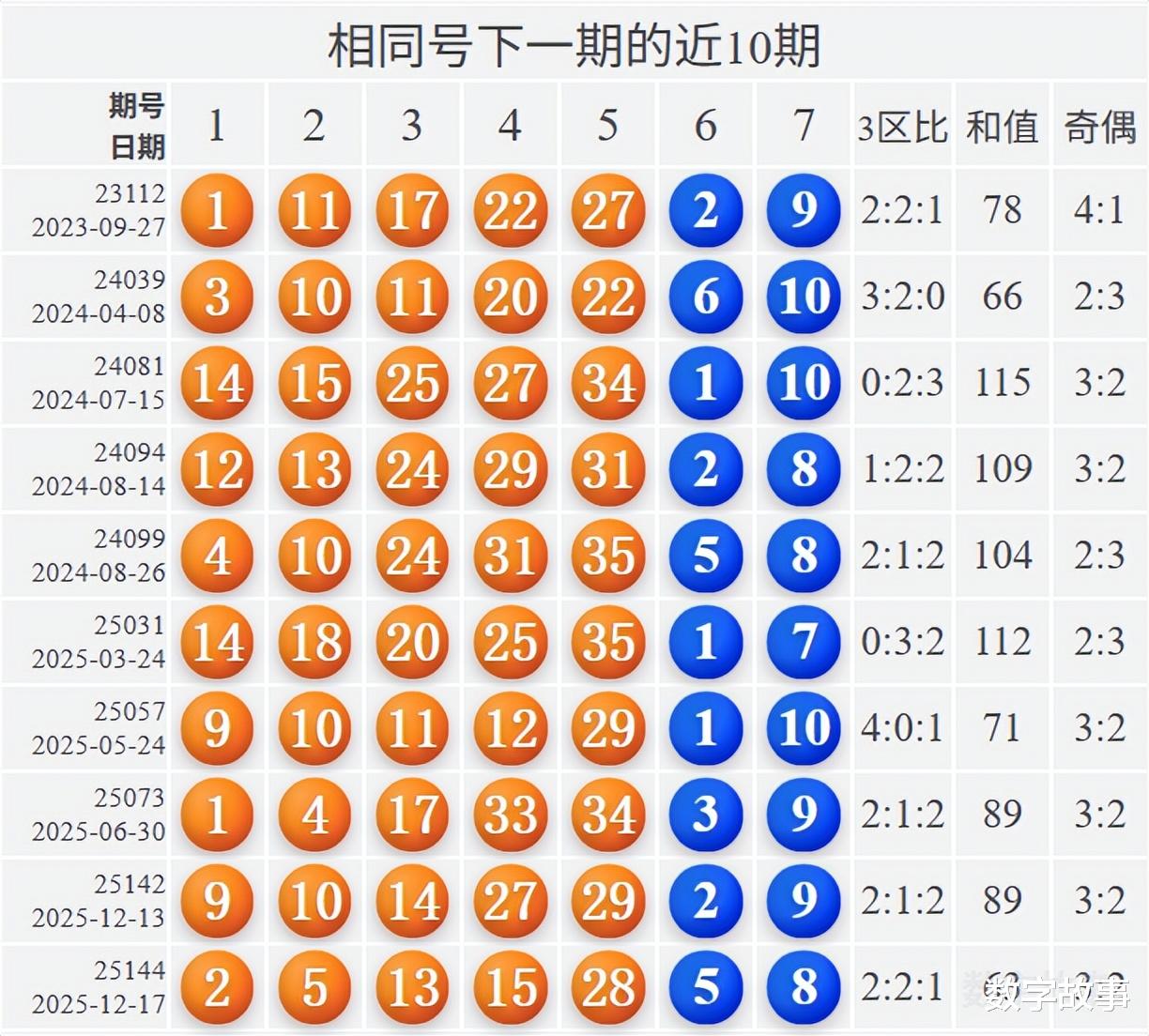 相似号下一期的近10期统计: