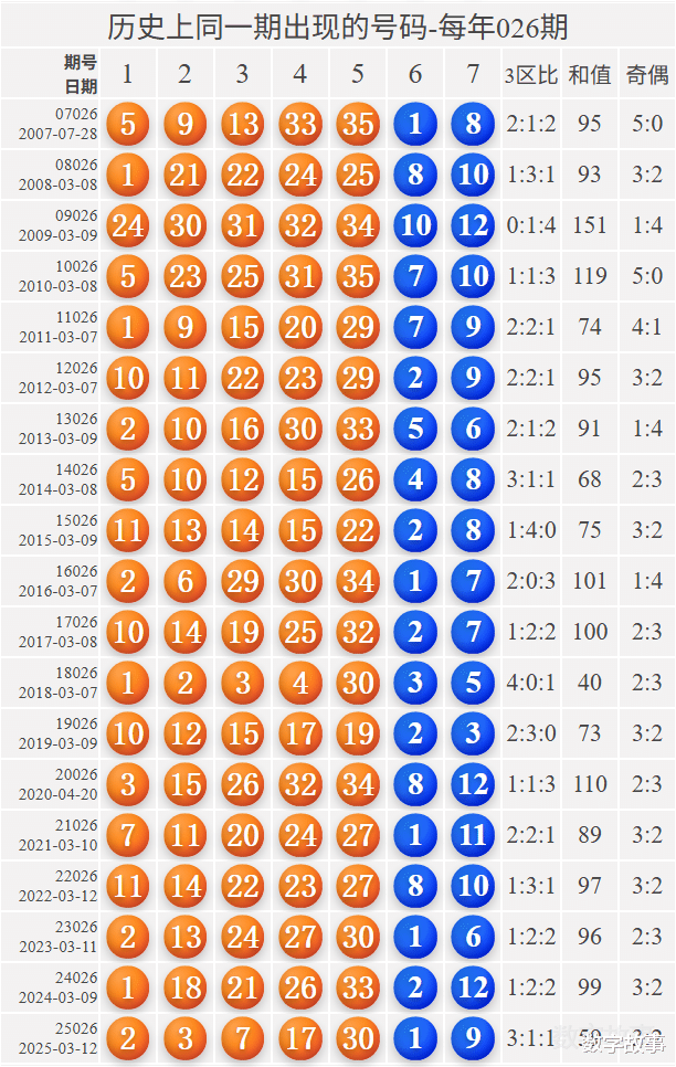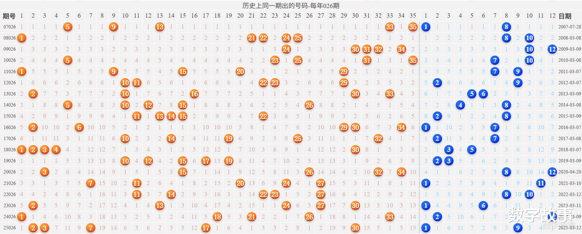 2) 历史同一期: 每年026期 (共19期)