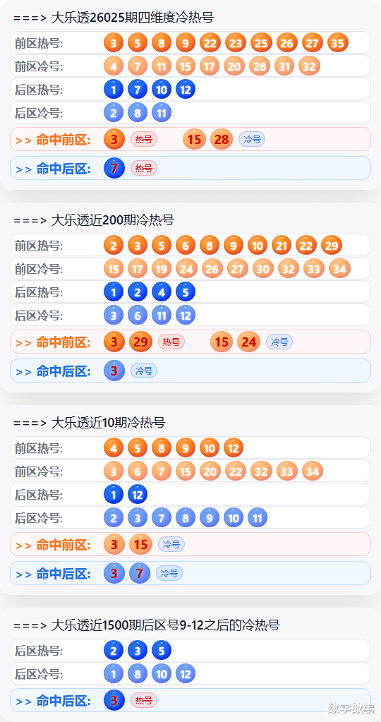 =>大乐透近1500期后区号3-7之后的冷热号后区热号:9,1,3,2后区冷号:6,12