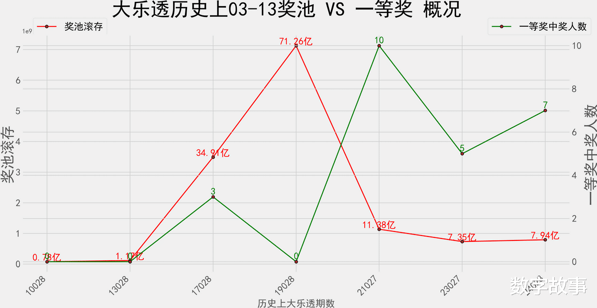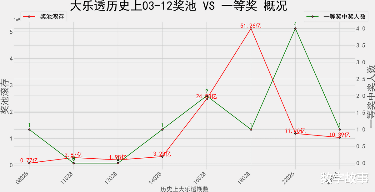 奖池滚存&一等奖数 走势图: