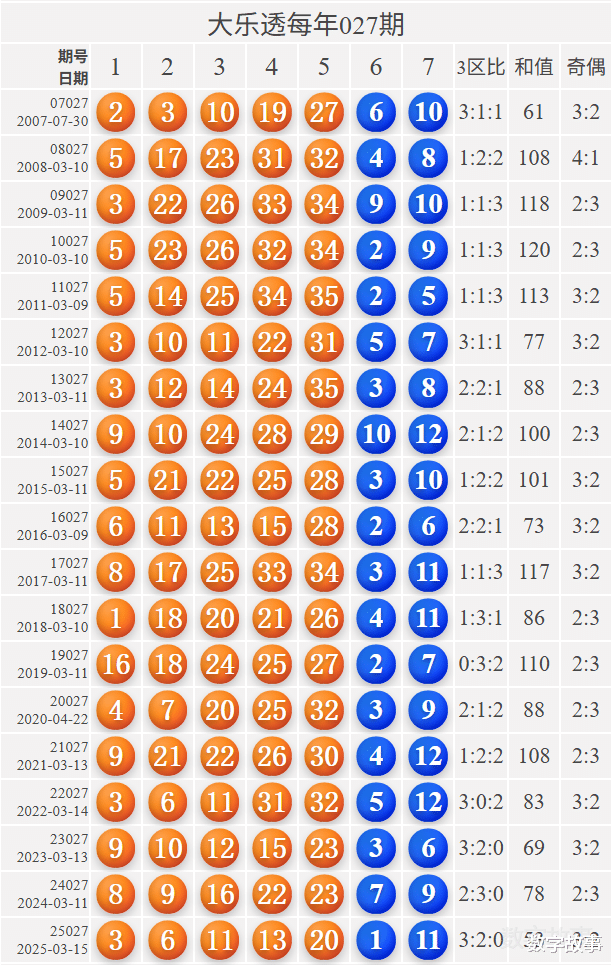 大乐透每年027期的出奖号