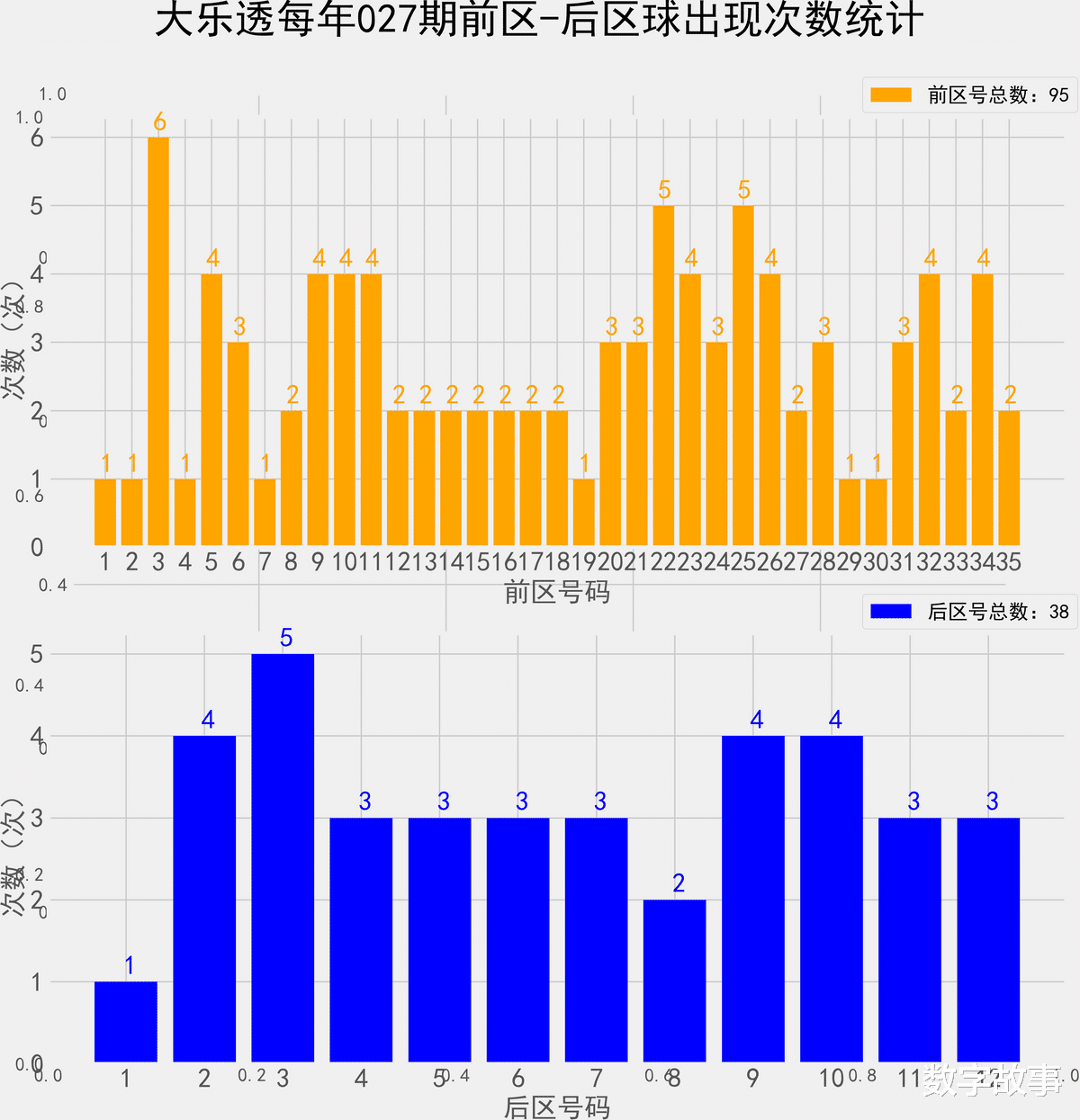 统计每年026期的样本数据: 95个前区号 38个后区号