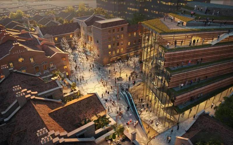 结合在地文化,把石库门建筑中的天井、里弄等传统元素,巧妙融入建筑的立面与建筑美学,打造区域内的天际线新地标。