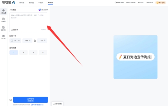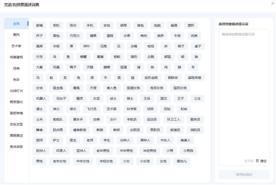 1、在输入框中写入提示内容,例如描述主体、风格或场景