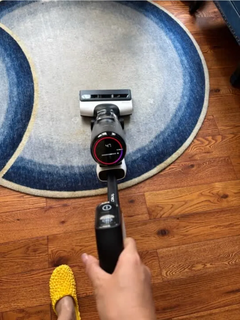 再结合电商晒单说说产品,这是去年定位高性价比的入门级新品,搭载230W电机(100000转/分钟),最大吸力17000Pa(最大吸入功率68W),支持450次/分钟高速滚刷活水擦地技术,能“瓦解”一些地面的顽固污垢。