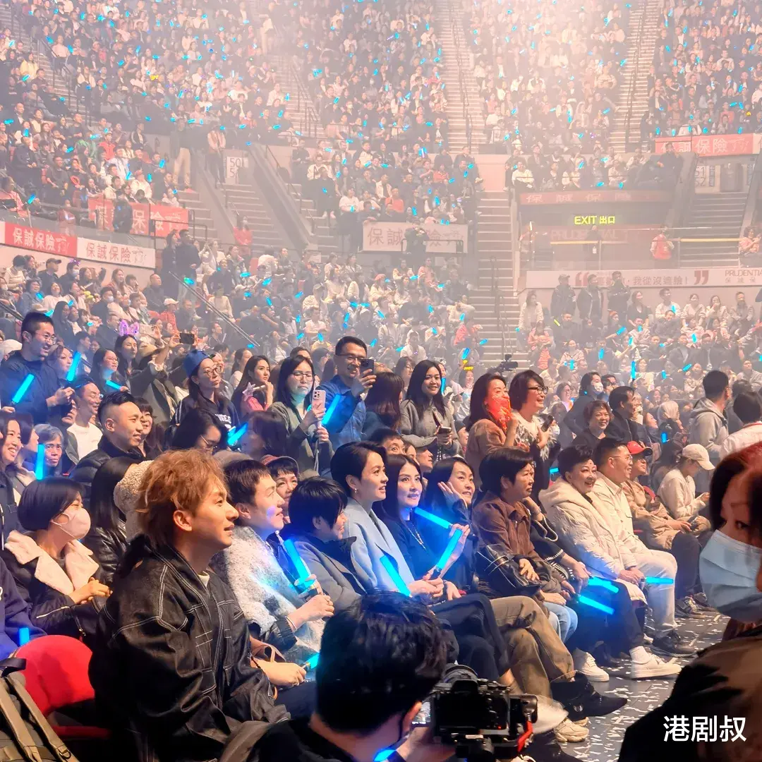 港剧叔实名羡慕照片中这一排的嘉宾啊,别人是抢票抢不到,他们都是拿着刘德华的友情票坐在了VIP区。考考你们的眼力,能认出多少明星来,认出三个算是及格。其中有两位阿姨的服饰、气质看起来相当普通,也坐在了Vip区,你们知道她俩是谁吗?
