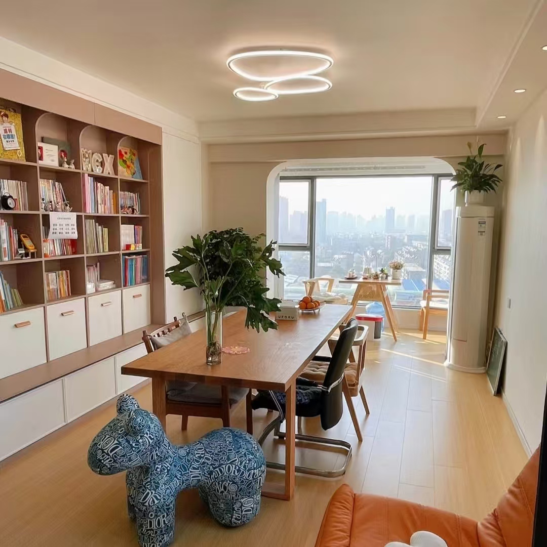 结果孩子三年级的时候就开始有独立想法了,不愿意在客厅学习,一直嚷嚷着要在自己房间加个书桌,后来客厅也就变成了我自己办公追剧的地方。