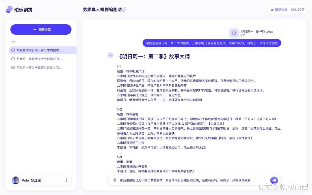 杨晟:我们原理是多模型组合策略,结合垂类场景数据与专业知识策略,构成专业的编剧助手。现在很多写作软件其实是基于通识性知识实现的剧作生成,对于专业剧本的认知深度不足。我们的底模针对不同的品类,做了针对性的策略同时,在生成剧本的同时考虑到了合规性、商业化结点、爽点节奏等专业性极强的因素,生成的剧本符合目标人群口味的同时,也更容易实现后续开发。
