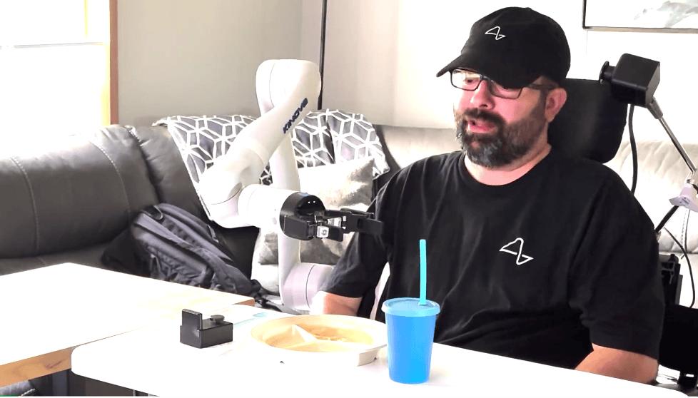 Nick 四年来无法活动四肢,现在却能通过意念控制机械臂完成从吃饭到抓痒等基本任务。