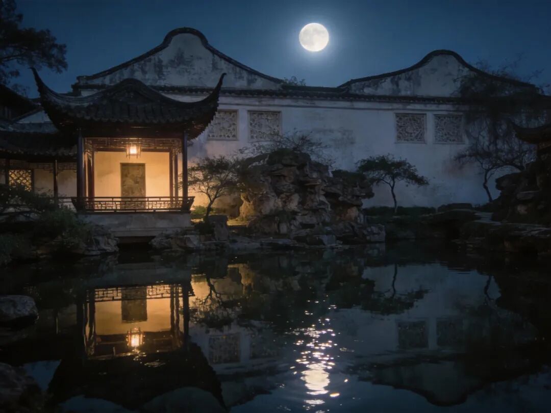比如苏州网师园的「月到风来亭」,这个亭子刚好建在池水中央,夏天的晚上,你坐在亭子里,抬头就能看到天上的月亮倒映在池水里,微风一吹,水面波光粼粼,月亮的影子也跟着晃动,那意境,简直绝了。这就相当于你在自己家的阳台上装了个星空顶,晚上抬头就能看星星,氛围感直接拉满。