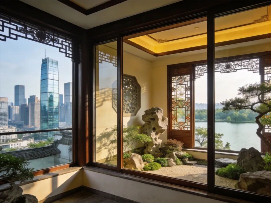 比如现在很多的高端住宅,都会设计「落地窗」「观景阳台」,其实就是借景理念的现代应用——把外面的山、水、城市景观,借到自己的家里来。还有一些商业综合体,会在中庭设计「空中花园」,把自然景观借到室内,让顾客在购物的同时,也能感受到大自然的气息。