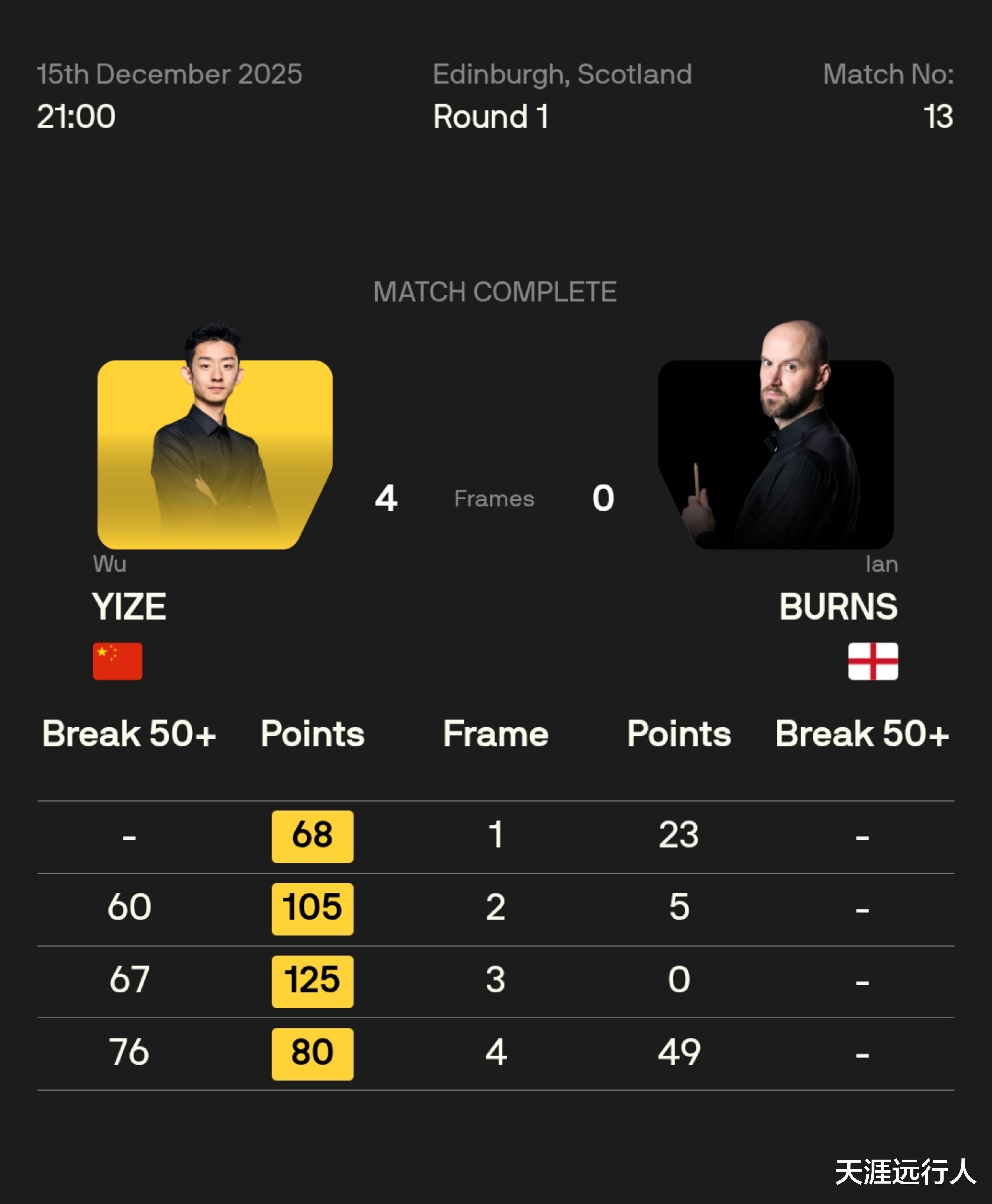 吴宜泽 4-0 伊安·伯恩斯