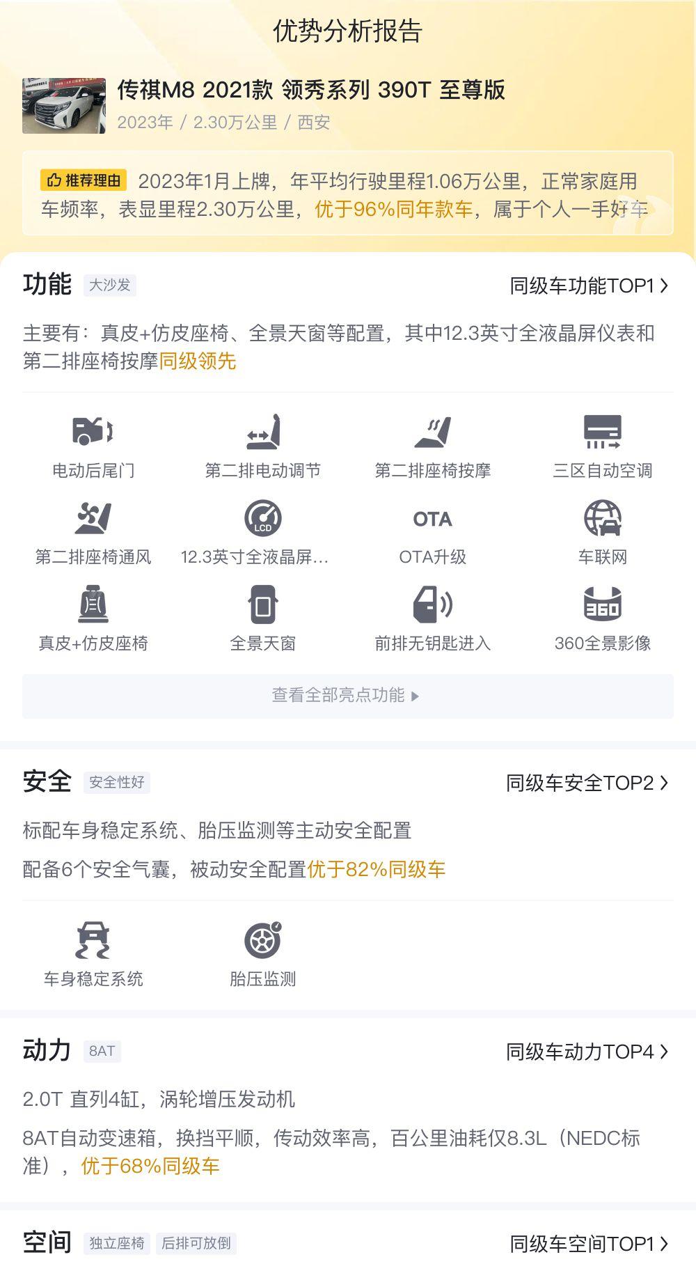 最后,我们用数据说话。根据某二手车交易平台的数据显示,2021款广汽传祺M8领秀系列390T至尊版的平均成交价在15万左右,里程数大多在3万公里以内。这台车2.3万公里的里程数,以及16.58万的价格,在市场上属于中等偏上的水平。