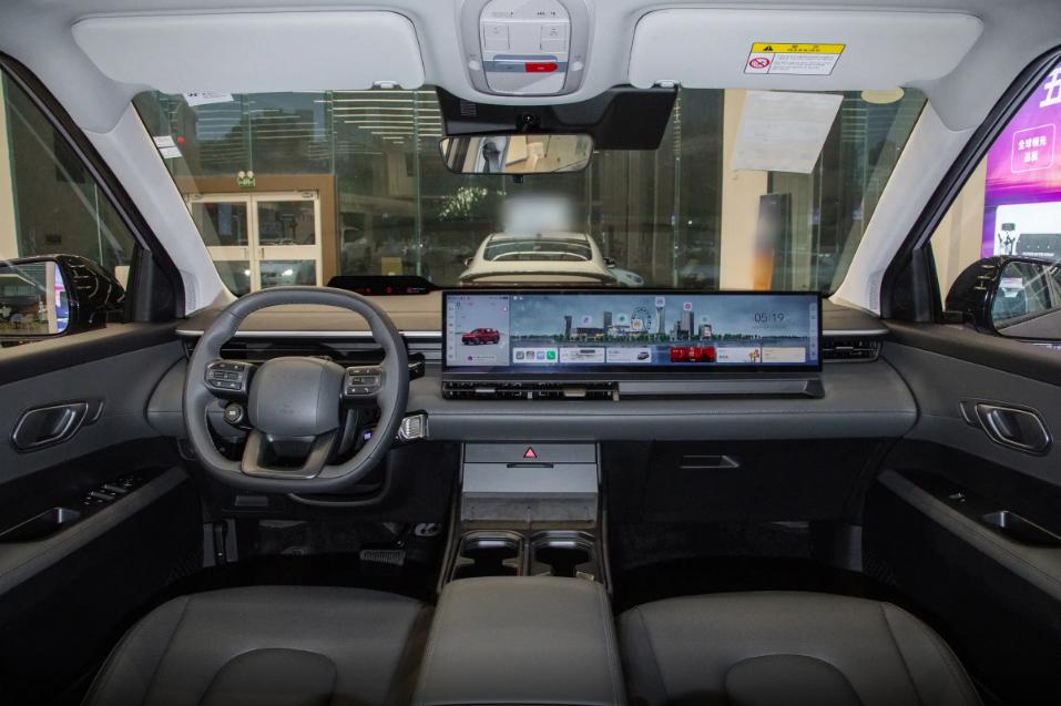 换挡系统集成在方向盘后方,采用电子旋钮式设计,如此一来为前排节省更多储物空间,前方是手机无线充电面板,后方是杯架以及储物格。宽大座椅有着不错的乘坐体验,从次低配开始支持加热,高配车型还支持通风,第二排座椅支持靠背调节,乘坐空间表现没什么问题。